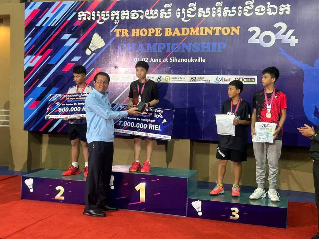 លោក ម៉ាង ស៊ីណេត អភិបាលរងខេត្តព្រះសីហនុ បានអញ្ជើញបិទ និងបំពាក់មេដាយជ័យលាភីជូនដល់កីឡាករ កីឡាការិនី ក្នុងការប្រកួតកីឡាវាយសីជ្រើសរើសជើងឯកអន្តរជាតិ TR Hope ឆ្នាំ២០២៤(TR Hope Badminton Championship 2024) ព្រមទាំងស្វាគមន៍ និងថ្លែងអំណរគុណវត្តមានប្រតិភូកីឡាមកពីប្រទេសថៃ និងកីឡាករមកពីក្លឹបនានាក្នុងព្រះរាជាណាចក្រកម្ពុជា ដែលបានចូលរួមប្រកួតនាពេលនេះ។ បច្ចុប្បន្នវិស័យកីឡានៅកម្ពុជា បានដើរតួនាទីយ៉ាងសំខាន់ក្នុងសង្គម ខណៈវិស័យកីឡានេះមានការរីកចម្រើនយ៉ាងខ្លាំងគួរឱ្យកត់សម្គាល់ក្នុងនោះ ក៏មានប្រភេទកីឡាវាយសីផងដែរ និងត្រូវបានយកចិត្តទុកដាក់ពីសំណាក់ប្រមុខថ្នាក់ដឹកនាំរាជរដ្ឋាភិបាលកម្ពុជា។