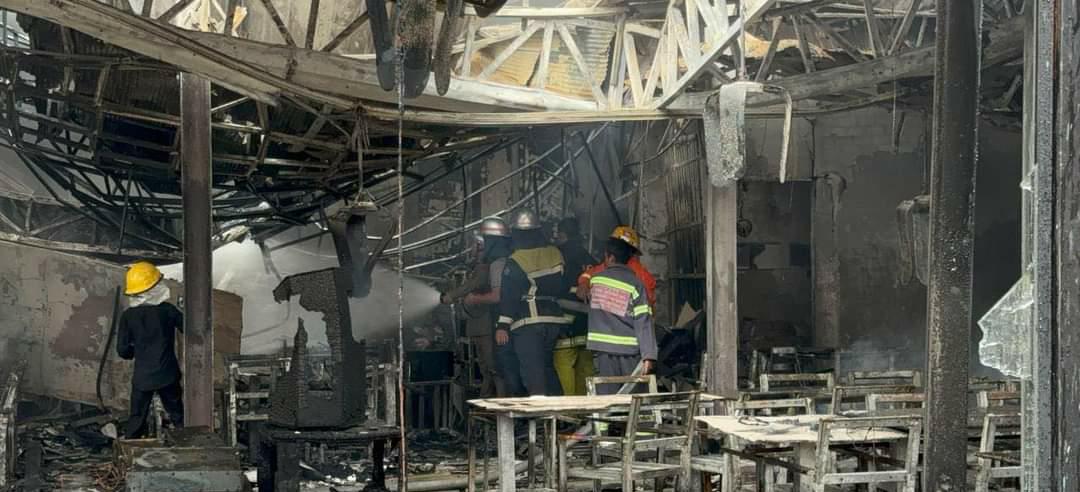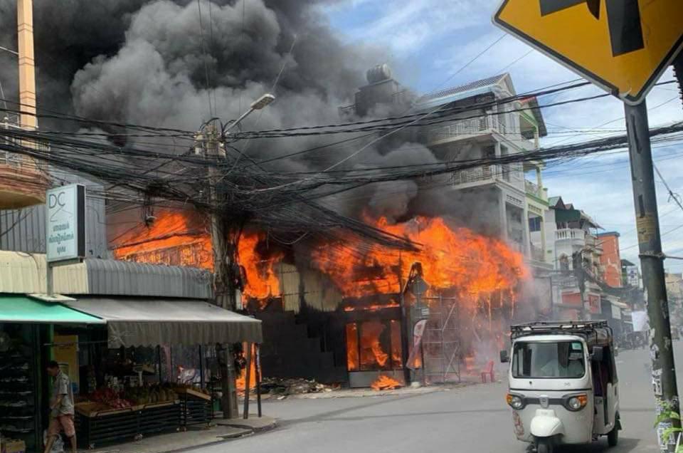 អគ្គិភ័យឆាបឆេះអតីតភោជនីយដ្ឋាន ប្រេន ឌឺ មួយកន្លែងយ៉ាងសន្ធោសន្ធៅ បង្កការភ្ញាក់ផ្អេីលជាខ្លាំងដល់បងប្អូនប្រជាពលរដ្ឋរួមនឹងសមត្ថកិច្ចហៅរថយន្តពន្លត់អគ្គិភ័យចេញជួយអន្តរាគមន៍ផងដែរ