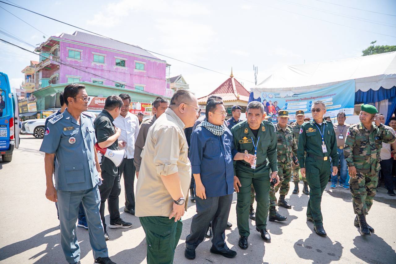 ខេត្តបាត់ដំបង៖ នៅព្រឹកថ្ងៃសុក្រ ទី២៥ ខែកក្កដា ឆ្នាំ២០២៥ ឯកឧត្តម សុខ លូ អភិបាល នៃគណៈអភិបាលខេត្តបាត់ដំបង ព្រមទាំងក្រុមការងារបានអញ្ជើញចុះពិនិត្យមើលស្ថានភាពច្រកទ្វារព្រំដែនអន្តរជាតិដូង ស្រុកកំរៀង ដើម្បីទទួលស្វាគមន៍ បងប្អូនពលករដែលបានវិលត្រលប់មកពីប្រទេសថៃវិញ និងរៀបចំរថយន្តសម្រាប់ដឹកជញ្ជូនបងប្អូនពលករ ទៅតាមបណ្តាខេត្តផ្សេងៗដើម្បីត្រលប់ទៅស្រុកកំណើតរៀងៗខ្លួនវិញ៕